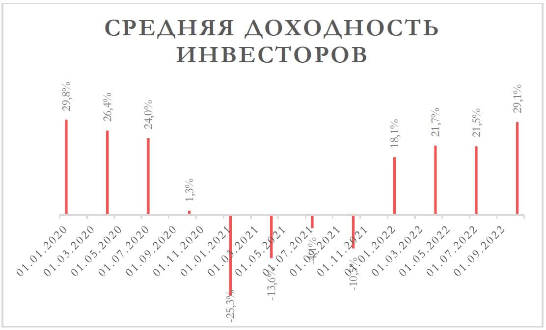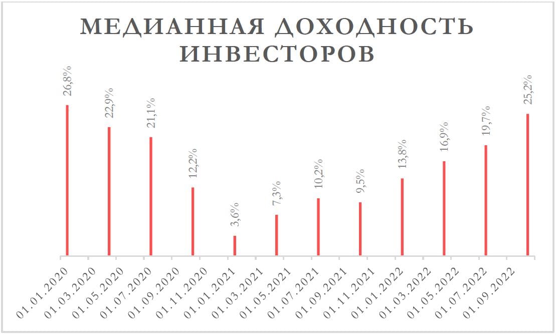 4. Медианная доходность инвесторов по всей платформе агрегируется средним арифметическим.